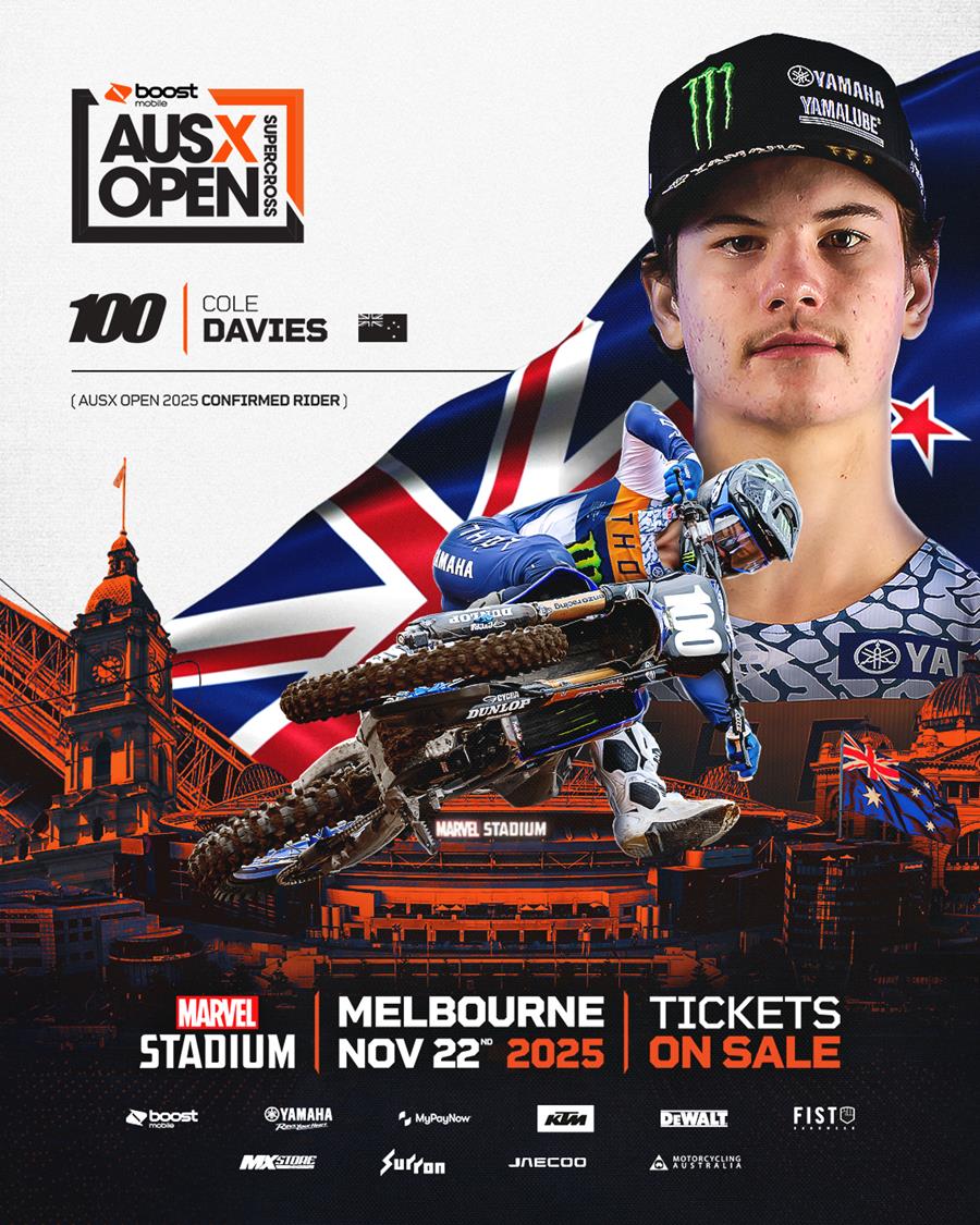 Kiwi fan favourite and AMA Rookie of the Year, Cole Davies, will make his AUSX Open debut in the 2025 Supercross series.