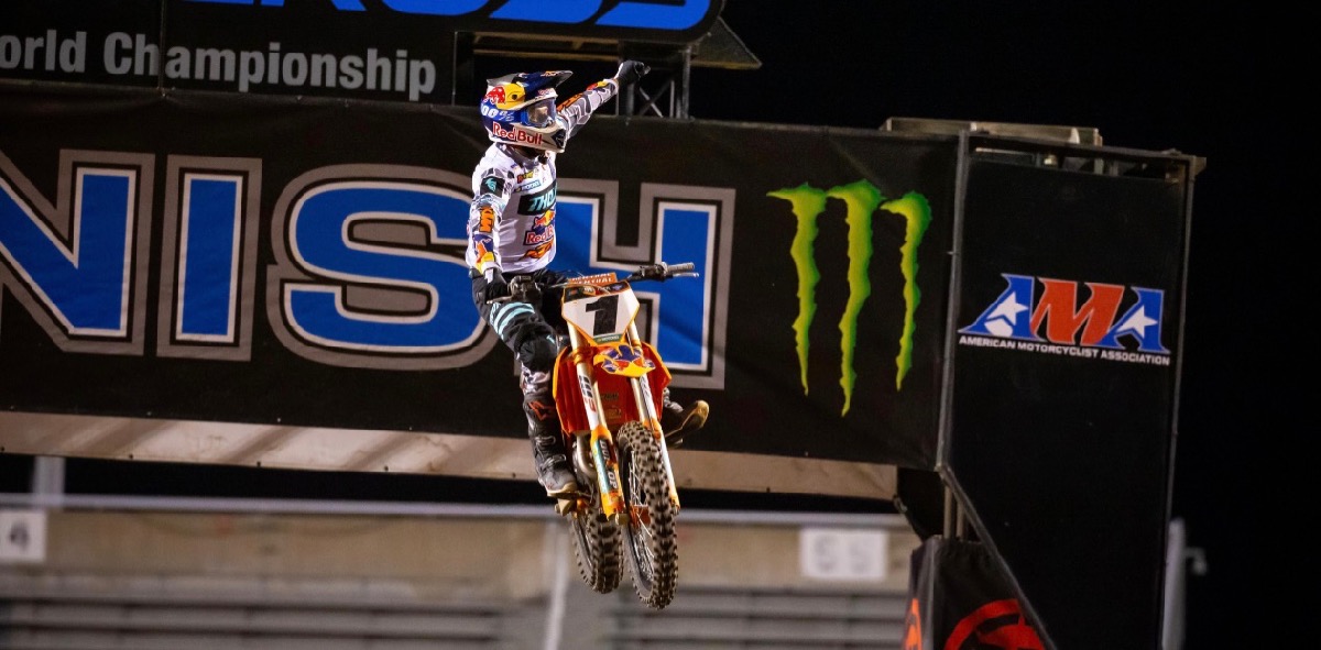 Webb beat Kawasaki’s Eli Tomac and Husqvarna’s Zach Osborne to claim his second win of the series. “It was a great night overall but it was a tough race…