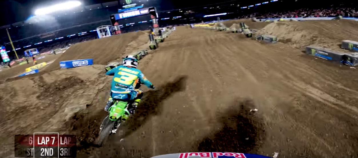 The 16-year-old from Queensland was one lap away from securing his first AMA Supercross 250SX Main Event win when a battle with defending champ, Yamaha’s Dylan Ferrandis, heated up.
