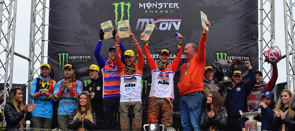 The former MXGP World Champion climbed the top of the podium at a soaked TT Circuit Assen with Standing Construct KTM’s Glenn Coldenhoff also excelling in the winning Dutch team.