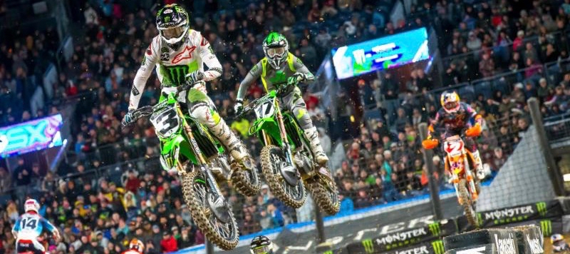The track at Broncos Stadium at Mile High for the fifteenth round of the Monster Energy AMA Supercross, an FIM World Championship was under snow a few days prior, but…