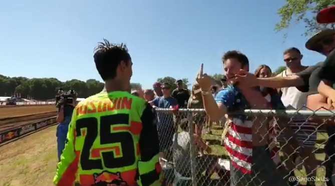 This disgraceful “fan”, and we use that term loosely, showed no remorse as he waved his middle finger in Musquin’s face as the French rider made the rounds high-fiving the…