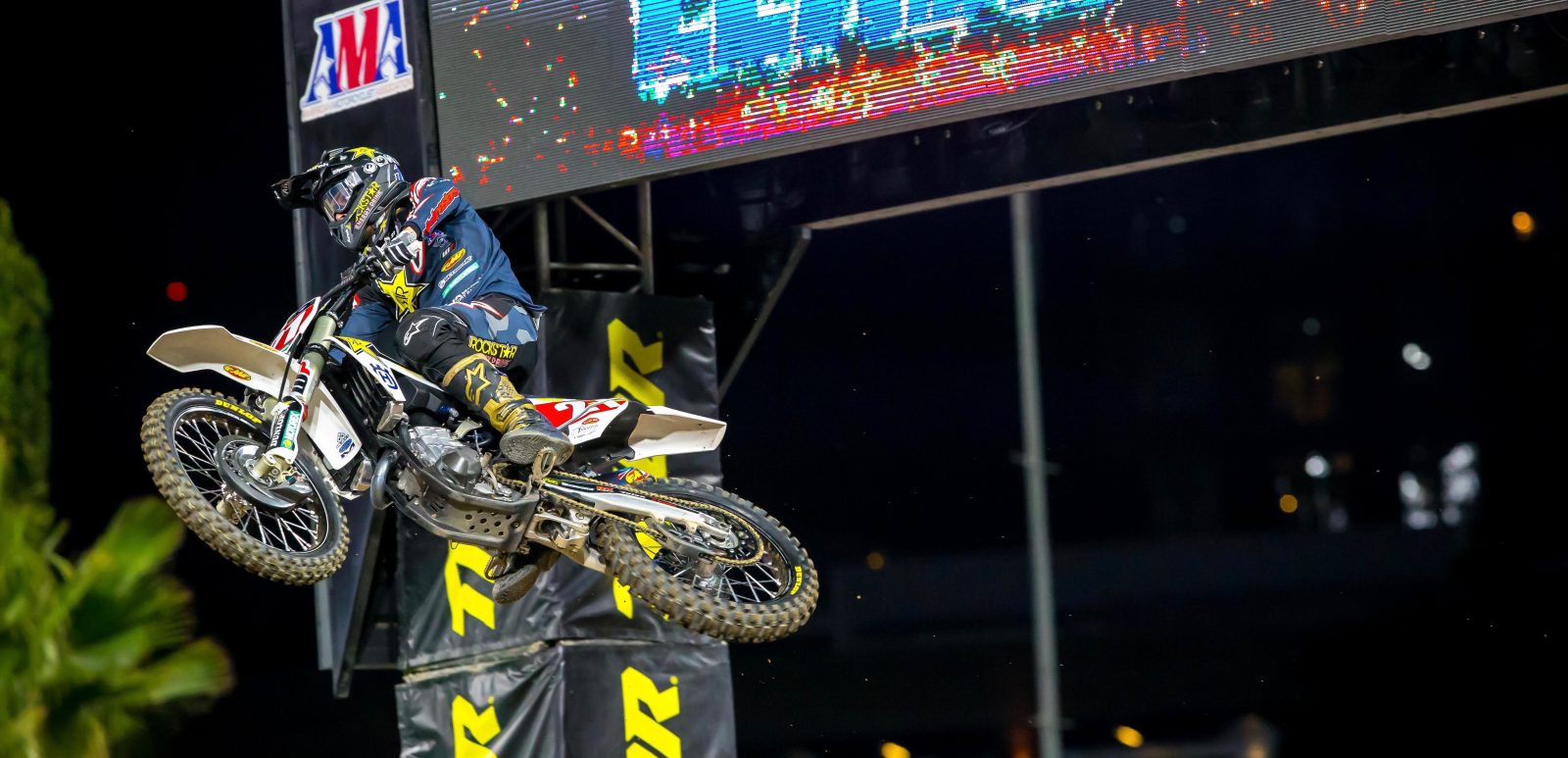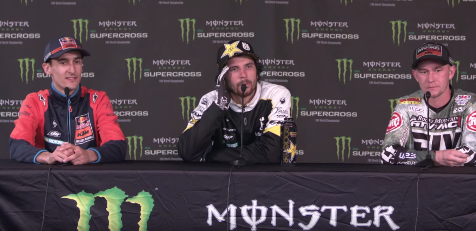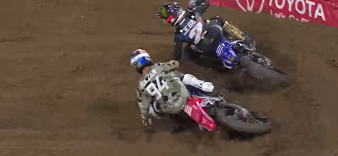 A first-turn pileup included Monster Energy Kawasaki’s Eli Tomac, Monster Energy/Knich/Yamaha Factory Racing’s Cooper Webb and Team Honda HRC’s Ken Roczen while Roczen’s teammate Cole Seely grabbed the holeshot and…