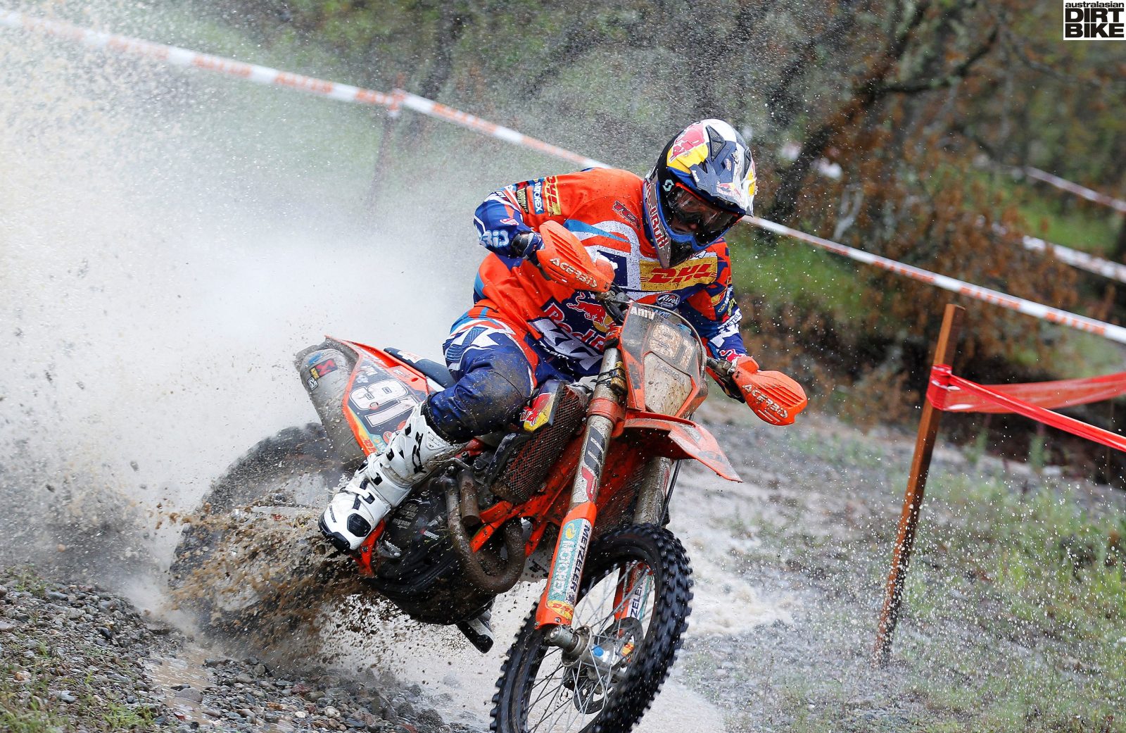 Day 1 Heavy rain at the venue on Saturday made the going tough but the factory team’s rookie British rider Nathan Watson finished 14 seconds behind new overall EnduroGP class…