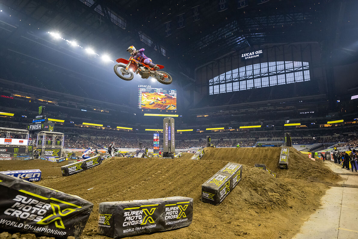 Watch all three 450 motos from the 2024 Indianapolis Supercross below: https://www.dailymotion.com/video/x8uobks https://www.dailymotion.com/video/x8uodek https://www.dailymotion.com/video/x8uodus