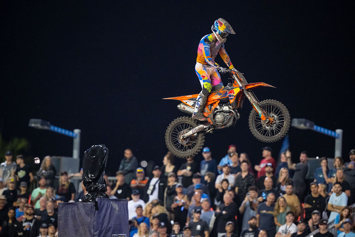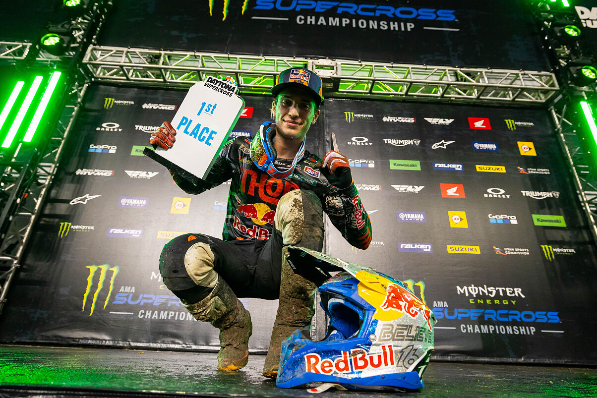 A spectacular first win in the AMA Supercross Championship was earned by Tom Vialle at Daytona International Speedway tonight, the Red Bull KTM Factory Racing 250SX East contender breaking…