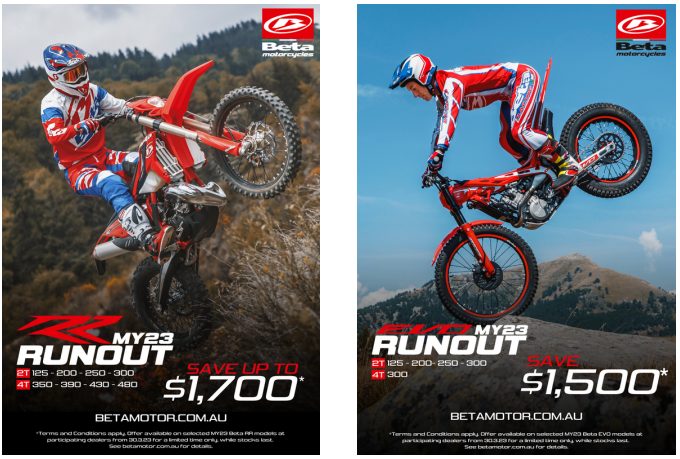 Beta Motorcycles Australia is pleased to announce a new runout promotion across the MY23 Beta RR range and select MY23 Beta Evo models. Customers can save up to $1,700…