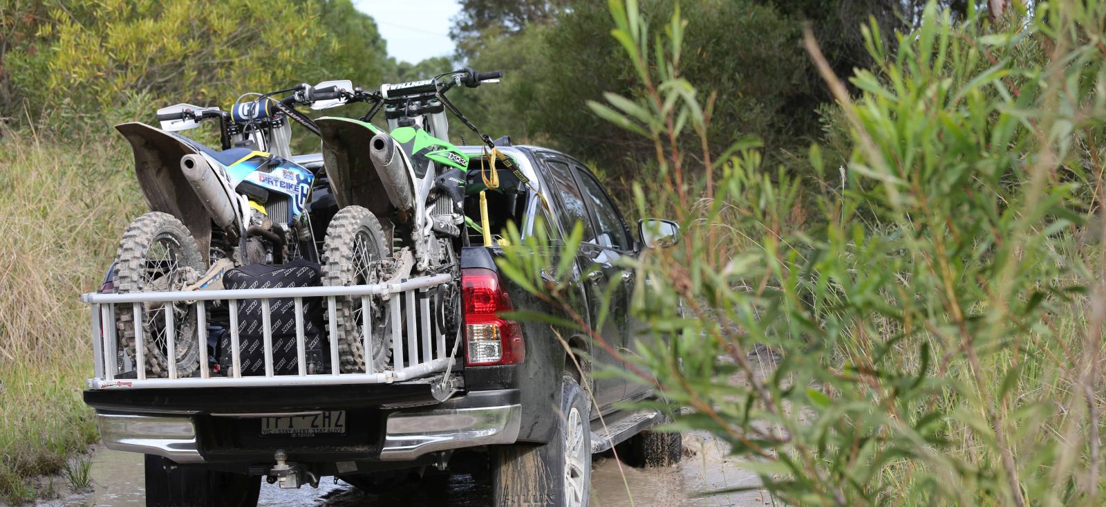We have a 2014 Toyota Hilux SR5, and after loading the bikes the ramp is easily converted into a cage to keep all you loose items from flying out the…