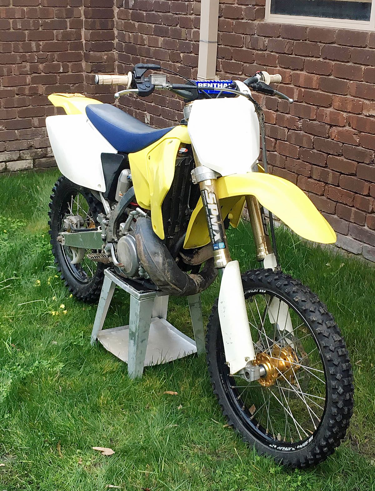 “I was keen to build a nice two-stroke for myself and, having had a long-term relationship with Suzuki, I thought it’d be cool to build up a nice version of the last model RM250. Byrner’s Suzuki in Seaford, Victoria traded this one in and I grabbed it for around $3000, which was pretty good value. It was pretty rough but the owner had purchased it brand new from Byrner’s so I knew where it had been.