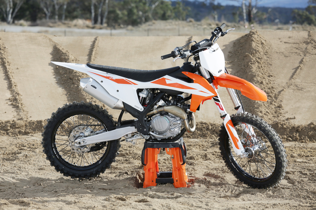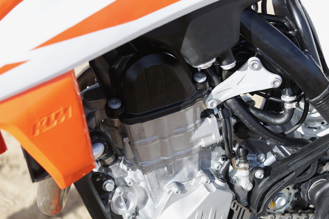 After finishing runner UP in the last 450 shootout, KTM has given this machine a massive overhaul. Well over half of the bike is new, with some of the major changes including redesigned plastics, a more rigid frame, revised damping on the WP 48 AER fork, lighter swingarm with additional axle adjustment, a lighter cylinder head, new lithium-ion battery, redesigned radiators and new four-speed transmission.