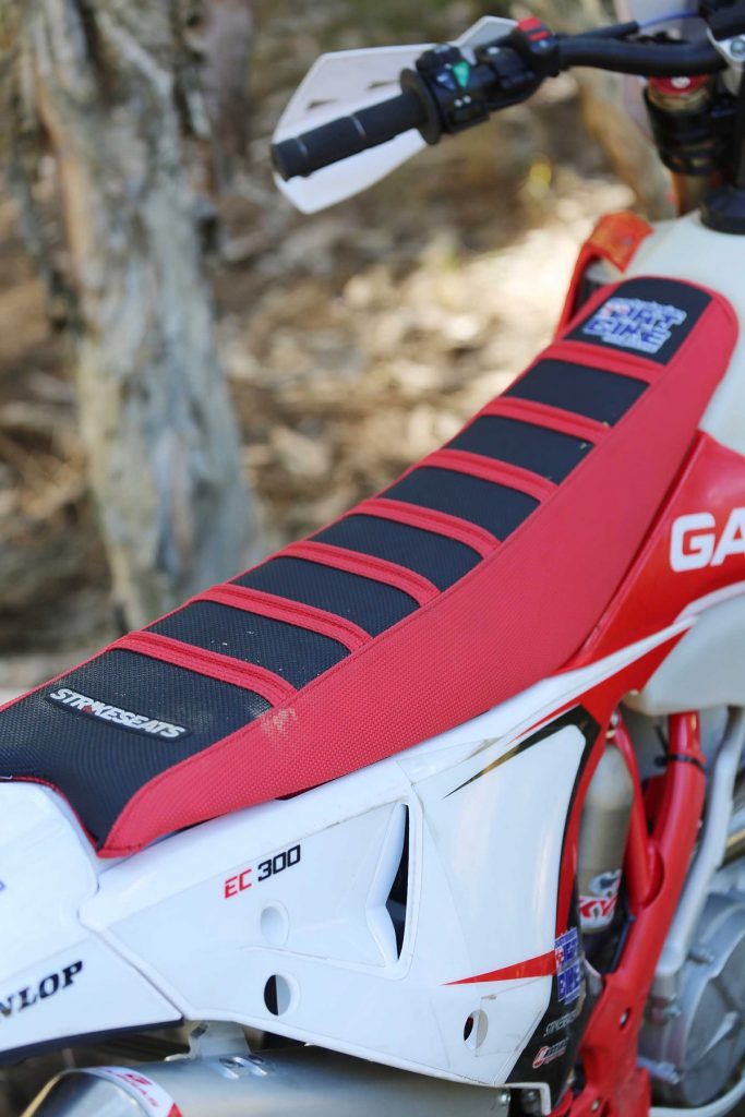 The 2019 Gas Gas EC300 engine is no snore-fest. It’s a bit of an animal and more like 300s from yesteryear than the four-strokes-in-disguise we’re all becoming used to. The extra grip from the pleats kept me planted in the saddle, reducing the workload on my skinny arms.