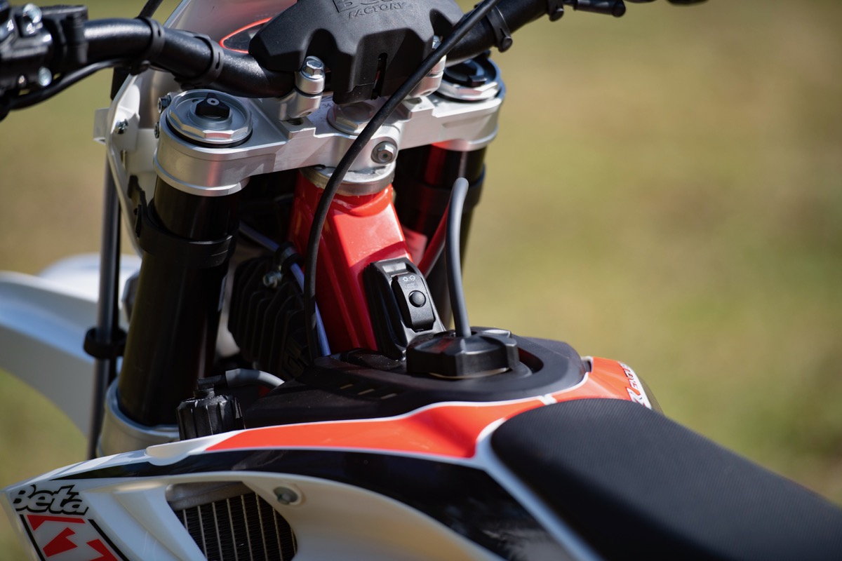 After discovering that the bikes at the international launch in Tuscany had incorrect oil levels in the ZF Sachs open-chamber fork, Beta Australia was quick to rectify the problem. An extra 30ml of oil was added to the fork legs and, of course, what a difference that made.
