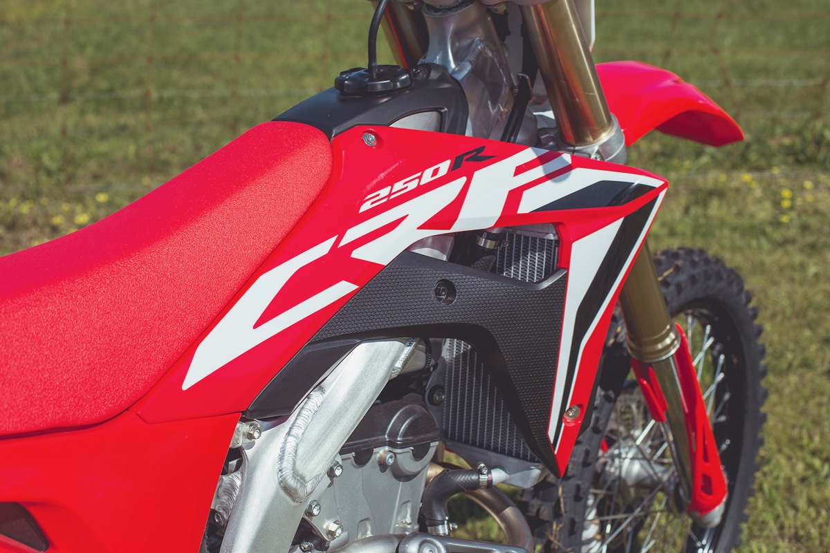 The bike reacts the way you want it to and doesn’t have any nasty surprises. In the chassis, the CRF250R navigates that really fine line between being rigid enough to hold a line well (no matter where you place it on the track) while also being plush enough to give the rider a comfortable feeling without being beaten up.