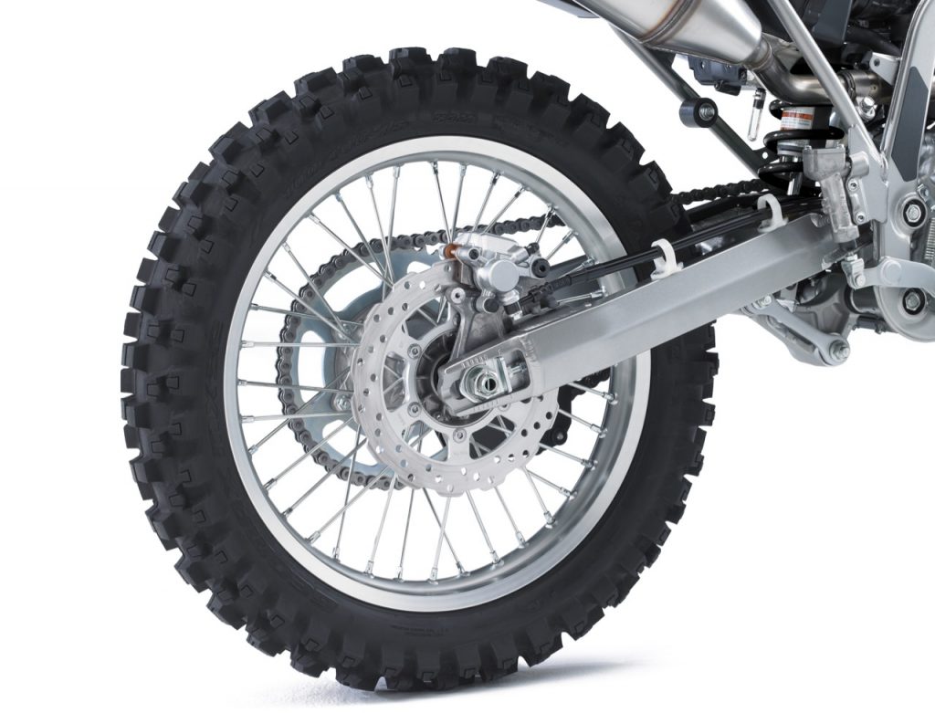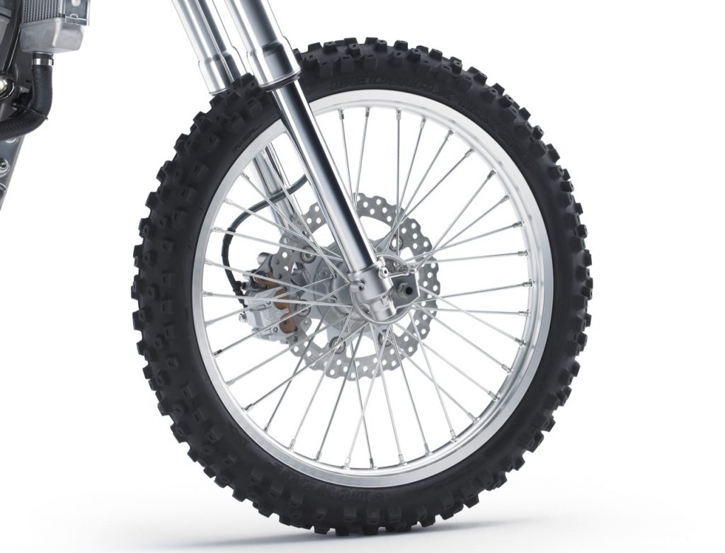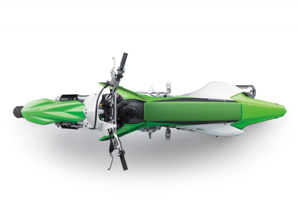 • 7.9 litre fuel tank blends into the KX-inspired seat for freedom of movement when off-road riding.