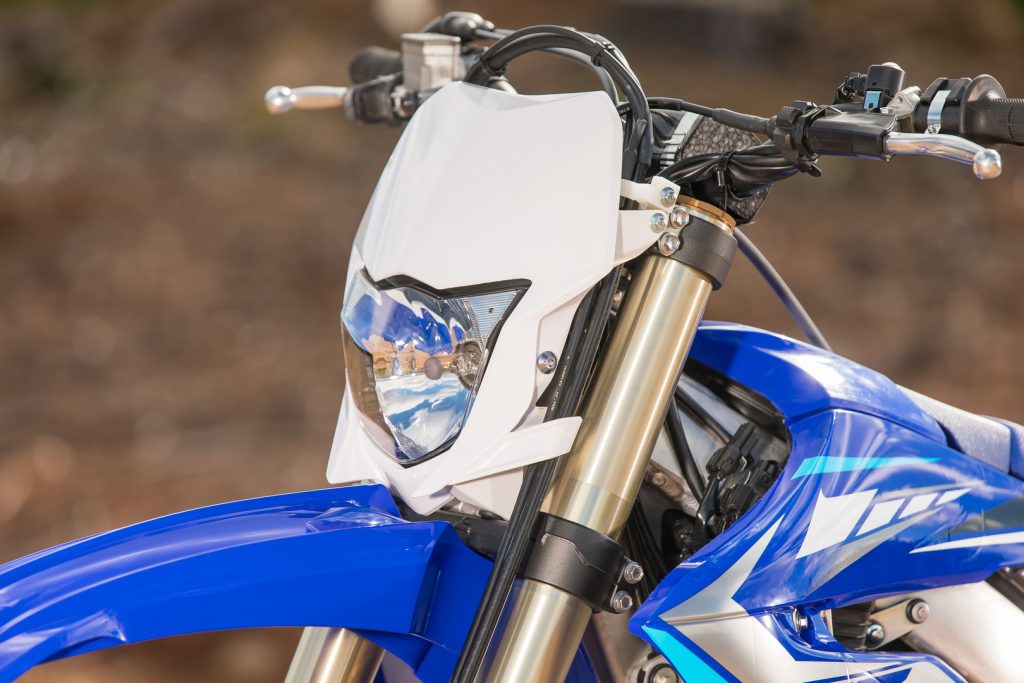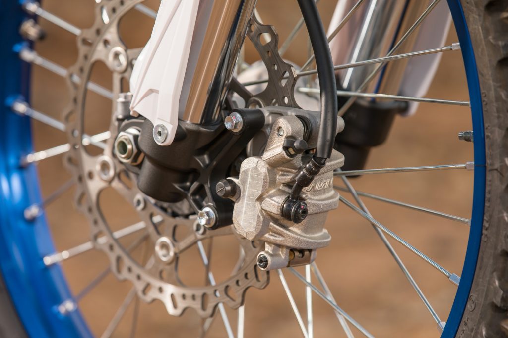 Fitted with the same KYB air-oil-separate closed chamber upside-down front fork as the YZ250F but with model-specific enduro settings to provide stable damping force. This suspension is acknowledged to be the best available on a production dirt bike and responds particularly well during the transition between the compression and rebound strokes. And because the suspension holds up well in the stroke, ground clearance is improved over the outgoing model.