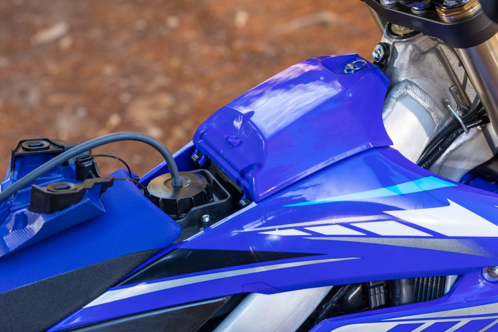 The engine is based closely on the winning fuel-injected YZ250F design, and features a rearward-inclined cylinder and reverse cylinder head. Its airbox is situated in front of the rider and the fuel tank located at the centre of the bike – a unique configuration that contributes to the bike’s mass centralisation, which plays a pivotal role in achieving light and agile handling.