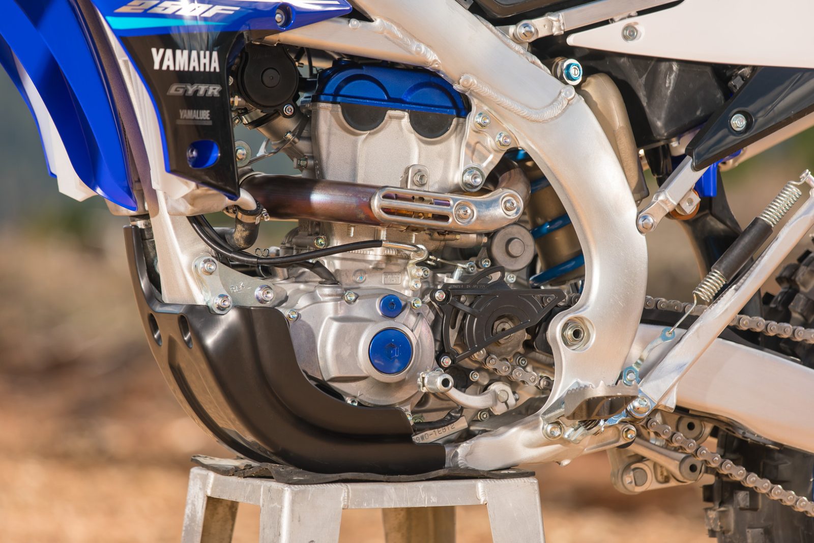 The engine is based closely on the winning fuel-injected YZ250F design, and features a rearward-inclined cylinder and reverse cylinder head. Its airbox is situated in front of the rider and the fuel tank located at the centre of the bike – a unique configuration that contributes to the bike’s mass centralisation, which plays a pivotal role in achieving light and agile handling.