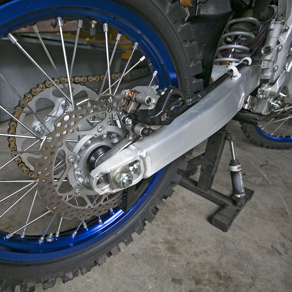 For 2022 Yamaha have boosted the spring rates up one rate and given the bike some firmer internals as well. The shock also went up one spring rate as well as getting some new internals. You can see when the bike is off the stand that it sits much taller than last year’s bike and because of that, it now appeals to a wider variety of riders.