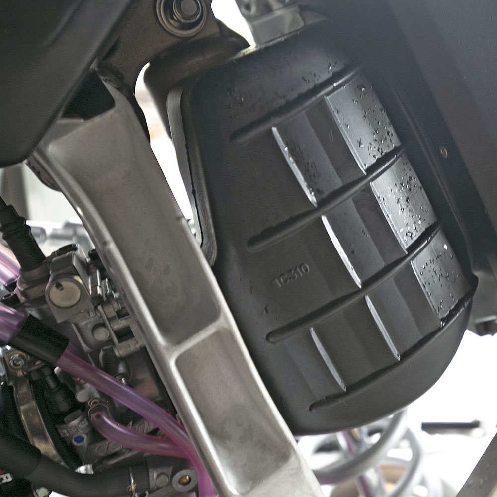 Another upgrade from the ’21 model is that the ’22 model now comes stock with a VForce4 carbon reed valve. The rear subframe is redesigned for a more efficient airbox intake design with air filter access improved via one-bolt t through the back of the seat. The silencer is also 50mm shorter than in previous years.