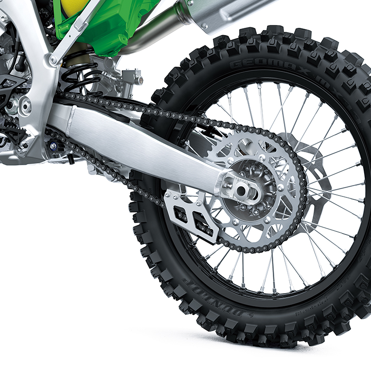 The KX250’s stressed member power plant features finger-follower valve activation for race tuning, just like the KX450. Smaller intake valves with narrower pitch matched to the new piston crown for consistent reliability.