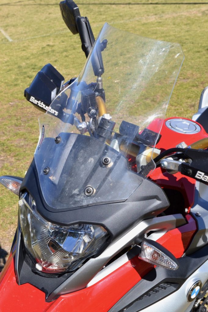 At first sight, there’s no question the Rally-Raid 310 GS with its spoked wheels, gold rims, TKC80 knobbies, Scorpion muffler, engine guard and taller suspension looks way more adventure-ready than the standard machine. It feels way more dirt worthy, too, when you climb aboard, being notably taller than the standard bike and the higher ’bar and beefy prototype ’pegs much improving the ergos.