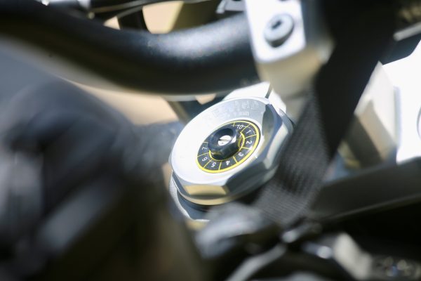 Unladen seat height is 860 mm, with an inner-leg curve measurement of 1,935 mm so she’s got some girth. Tank capacity is 15.5 litres, including a 4-litre reserve. Dry weight is 216 kg, with a fully fuelled road-ready figure of 229 kg.
