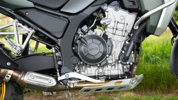 However, there is still room for improvement: the skid plate only covers the lower part of the power unit, leaving the lambda sensor, heat exchanger, horn and engine block at the front completely unprotected. Furthermore, it would be better to replace the water pump cover, currently made of plastic, with a more robust aluminium cover. But in any case, with a decent budget it should be possible to make the Kove 800X Pro even lighter and prepare it as a sporty all-rounder for raid-marathons.
