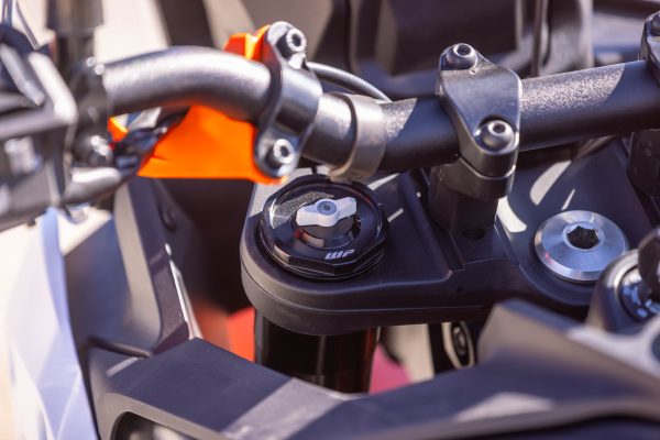 That said, if you decide to treat an erosion mound like a supercross triple – as we may have done once or twice – you’ll find the limits. We managed to bottom the forks when pushing past four or five feet of air. The rear shock held its own, but the front ran out of travel under big hits. The good news is there’s plenty of adjustability. We wound in the clickers to stiffen things up and found it made a marginal but noticeable difference. Most riders won’t be trying to huck the baby adventurer sky-high, but it’s good to know the bike can be tuned for the rough stuff. And let’s not forget: you’re still getting WP suspension on an $11,000 bike. Value doesn’t get much better than that.