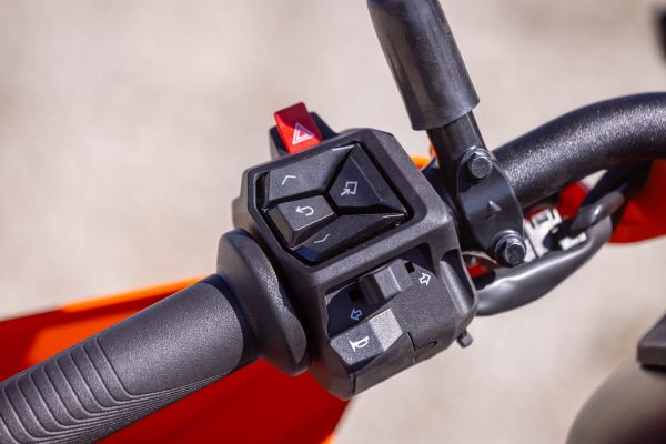 The riding position is very much “in the bike.” The handlebars are a good height, and the controls are of good quality. The dash is highly readable in sunlight and provides excellent information. The quickshifter is one of the best I’ve used. It’s an easy bike to ride around town or on the road, and an absolute blast through single track and trails. The bike feels nimble and easy to throw around. The suspension does a great job in rough terrain and handles potholes and rough roads very well. It finds its limits on larger jumps with a heavier rider on board, but that’s to be expected.