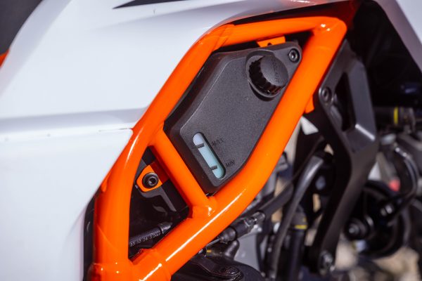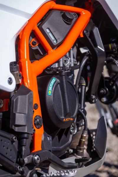 The R model features Street, Off-road, and Rain modes, with cornering traction control managed by a 3D sensor. ABS is selectable and includes a proper off-road setting, while a new 5-inch bonded-glass TFT dash provides all the info with anti-glare treatment to keep it legible in harsh sunlight. The switchgear has been redesigned and is now illuminated for easier use, while connectivity is via Bluetooth. That means riders can take calls, stream music, and get turn-by-turn nav through KTM’s app.