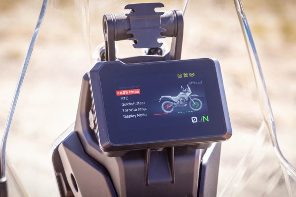 The rolling stock tells the same story. The R comes with a proper dirt-bike split of 21-inch front and 18-inch rear spoked wheels, wrapped in Mitas Enduro Trail E07+ tyres. Brakes have been upgraded too, with a 320 mm floating front disc paired with a two-piston Bybre caliper (sorry, no Bembo for $11k) and a 240 mm disc at the rear. Adjustable levers and new pump setups with tighter tolerances round out the package, while Offroad ABS finally stays engaged even after you cycle the ignition – fixing one of those tiny but maddening quirks from older models.