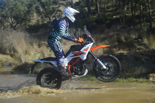 Bodywork has been pulled straight from KTM’s rally design playbook, a 14-litre metal tank, and a rally tower capped with LED lighting and unique positioning lights for the R round out the look. The graphics are in-mold, so they’ll last longer and the seat gets a new texture KTM calls “Adventure grip profile” – basically, it stops you sliding off the back.