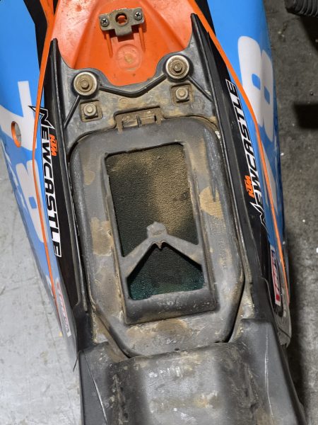 Trouble: When washing a KTM 50, water often gets past the air filter and runs down into the carburettor, causing problems next ride.