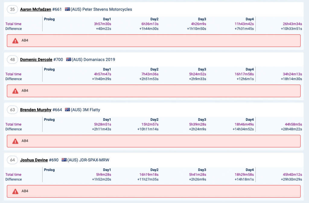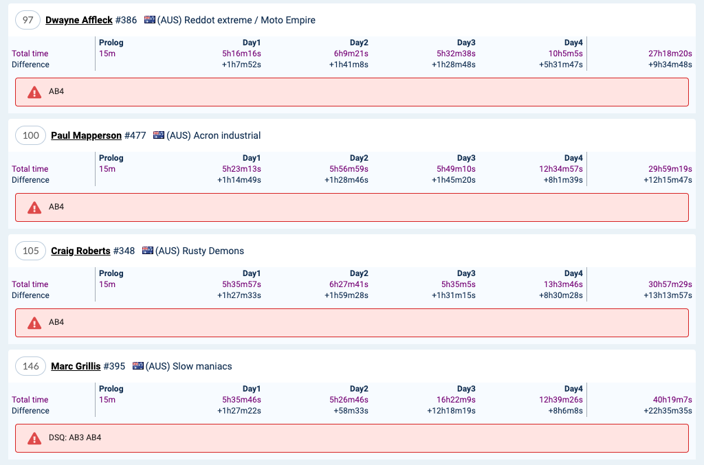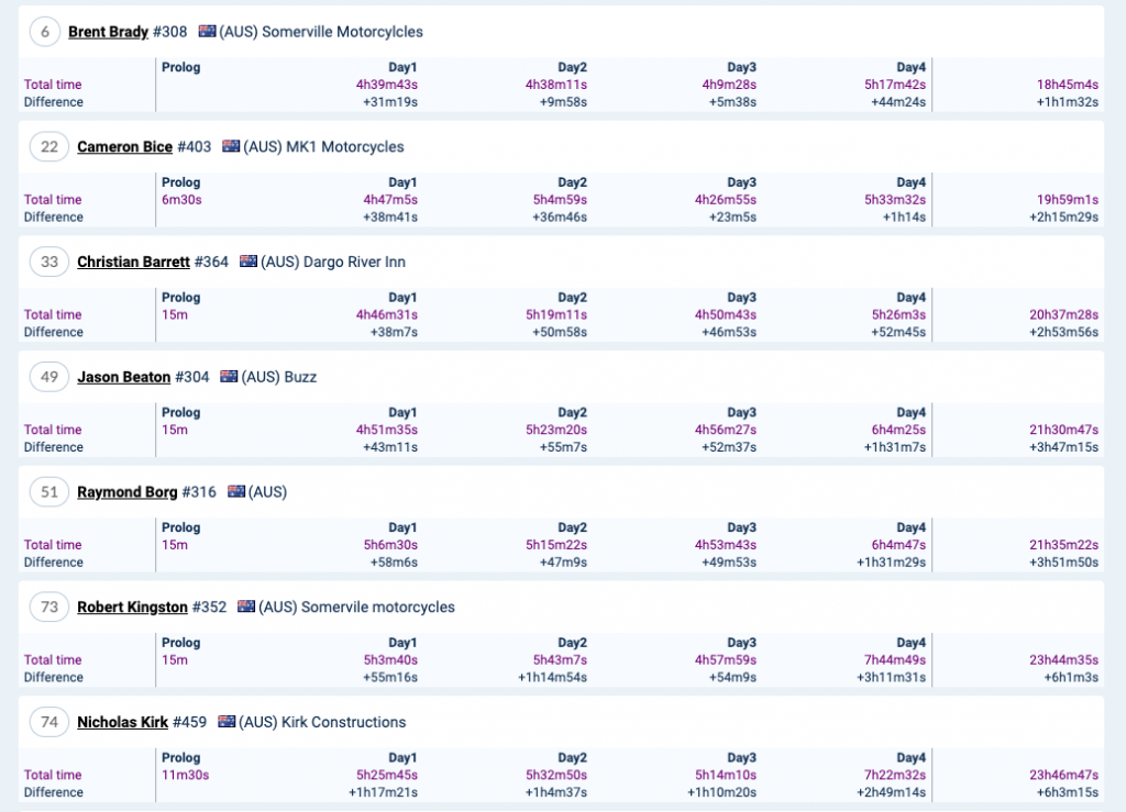 Final results for the field of Australian riders at Red Bull Romaniacs after Off-Road Day 4.