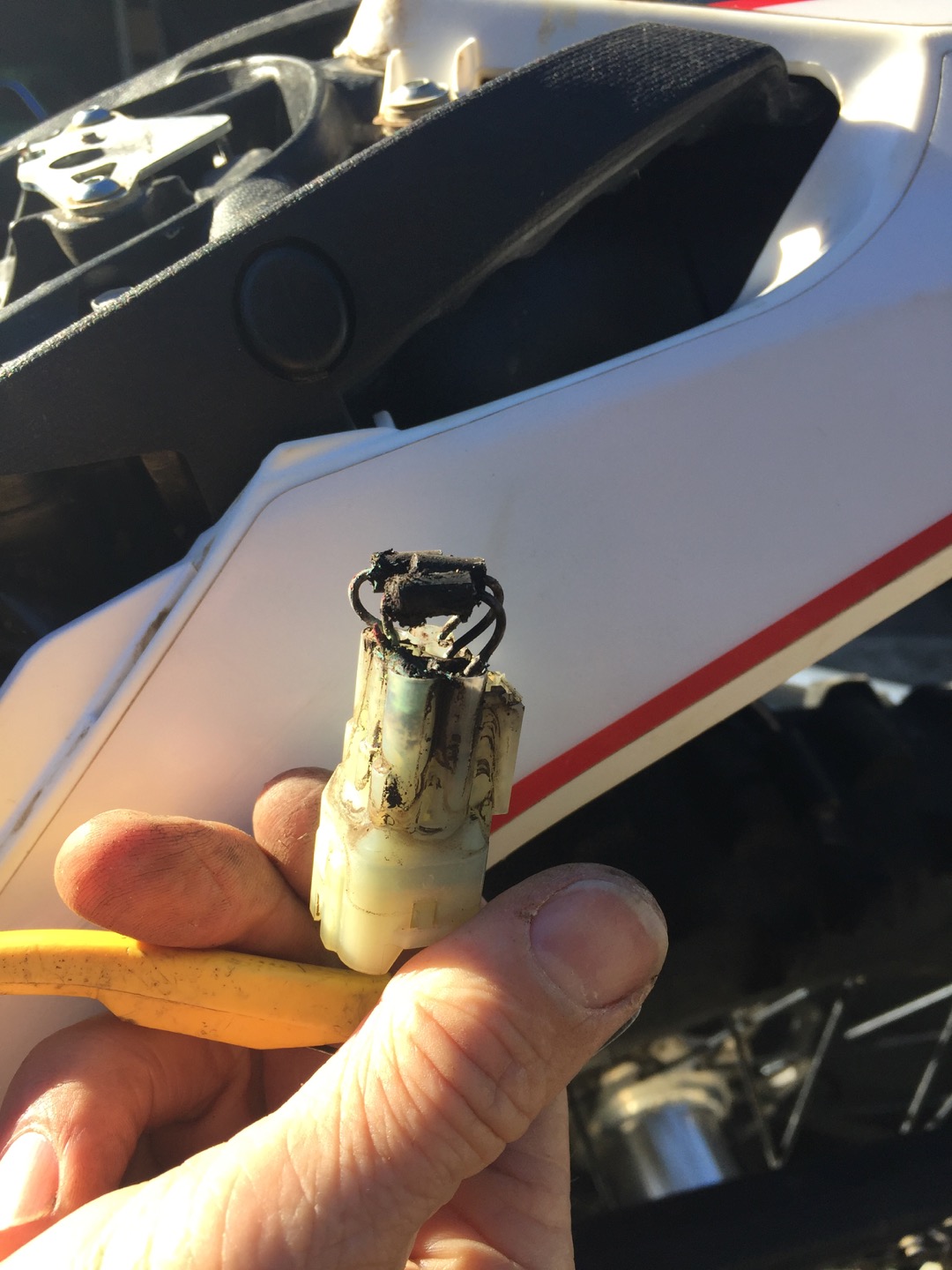 For a short time, Beta positioned a few diodes and plugs on the 2017 Xtrainer in such a way that they held water after you washed the bike. The trapped water corrodes the prongs on the diodes and can affect the flow of current. The problem is, the interrupted flow of electricity can mess with the oil-injection system and digital speedo.