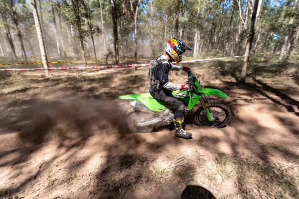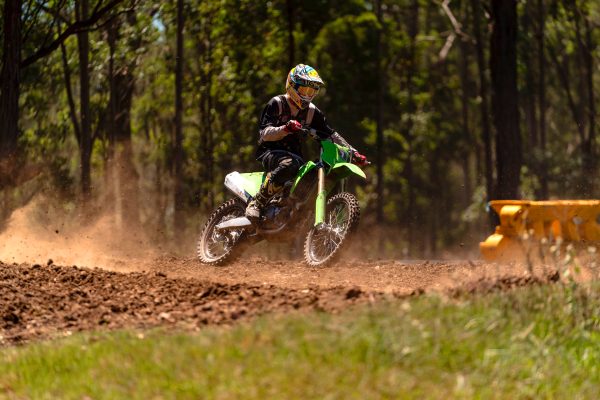 Then came the Kawasaki KX250, the lightest of the bunch but also the most demanding in its own way. Its high-revving four-stroke needed to be ridden on the limiter to feel alive. In bursts, it was sharp and responsive, but if you didn’t keep the revs sky-high it felt underpowered, especially against the torque monsters in the Beta and KTM. On an enduro track alone, its engine is solid, but in this mixed setting up against 450s on a motocross section, it struggled for grunt, forcing us to work the clutch and gearbox harder than we wanted over long motos.