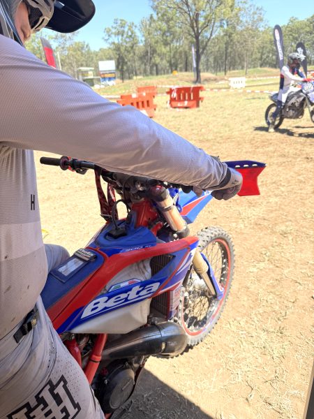 The Beta 300 Racing, by contrast, felt like the bike built for Foam and Loam’s hybrid track. Its two-stroke engine has impressive—smooth in wet mode, lively in dry mode. In the tight, rough enduro sections, the Beta picked up traction by lugging tall gears and not stalling where the KTM was spinning and stalling, its linear delivery and bottom-end torque making it easy to find flow. Flick to dry mode, and it snapped to life with a playful punch that kept it fun on the faster motocross straights. It didn’t have the sheer brutality of the KTM, but across long stints it was far easier to manage.