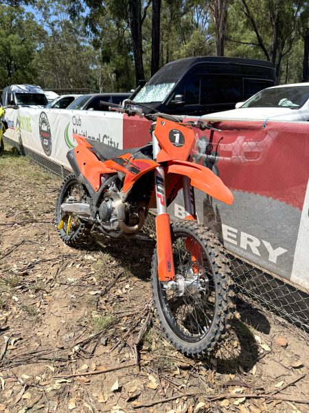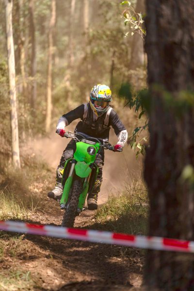 The KTM was not designed to turn around tight trees in second gear. It tracked straight under power on the fast motocross track but when the track got chopped up in the bush and the single trail turned into single rut it was hard to flick and turn. That stability became harder to manage with tired arms.