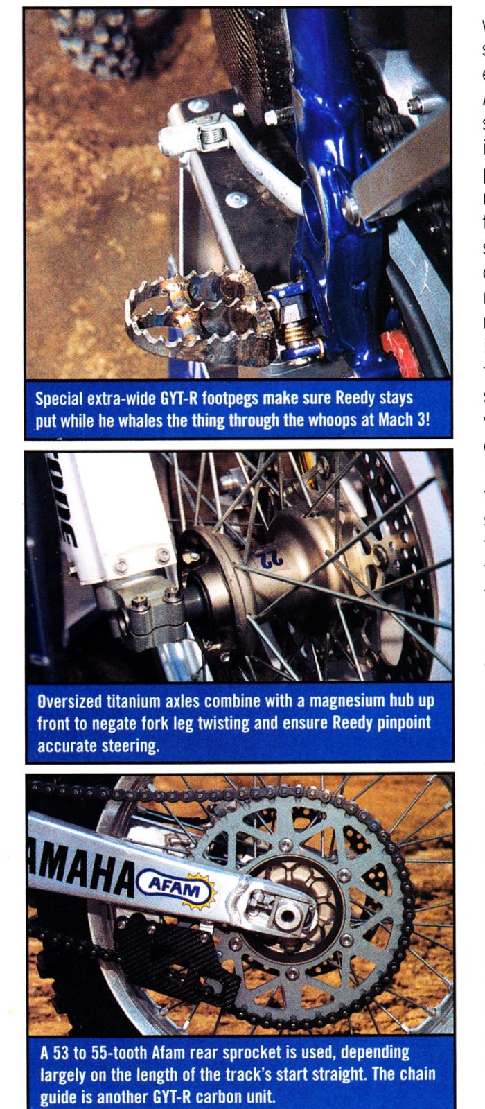 Third-gear starts were possible and King assumed the set up allowed Reed to use third more than any other gear on most tracks, minimising the number of gear changes per lap. King discovered that the Reed YZ250 was a purpose-built weapon for aerial work that didn’t know the meaning of bottoming out no matter how hard it was slammed into things.
