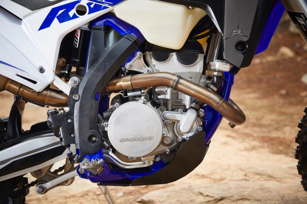 The Sherco has a huge 9.7 litre translucent tank which is the biggest of those fitted to the four bikes but, with all the extra revving needed, it’s going to use a bit more fuel. The plastics and graphics have been built stronger and there’s a gripper seat. The 300SEF-R holds its own against the bigger machines.