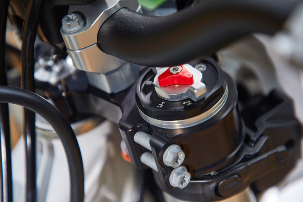 First up, the suspension changes. WP has beefed up the outer fork tubes and altered the internal settings of the XPlor fork to give better feedback and improved bottoming resistance. Husky has also chucked on a fresh ProTaper handlebar and, in a surprise move, swapped out the trusty Brembo brakes for Magura calipers with GSK discs.