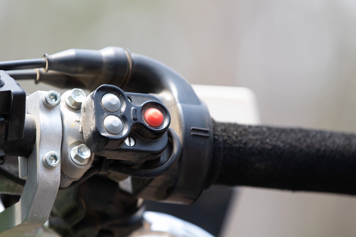Everywhere you look there are trick parts and the four fuel tanks, which give a total of 41 litres, certainly look like the factory items. They need two pumps to get all that petrol to the fuel injection system. The gearbox is reinforced but remains a five-speed, there’s a kickstarter you don’t get on the stock bike anymore and there’s a cooler to boost the stock oil capacity, which we’d imagine is more than the stock 900ml.