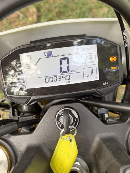 The dash is good. You’ve got fuel level, ABS, traction control, all clearly displayed. There are a lot of controls, maybe almost too many for dirt riding, but for commuting and general use, it makes sense. It’s easy to live with day to day.