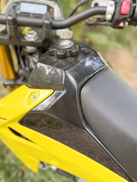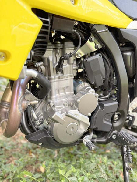 The motor feels good, smooth, easy, and very classic four-stroke in character. It chugs along nicely and feels like an old DR-Z400, but with a bit more pep.
