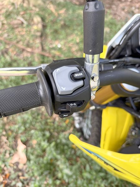 Traction control is annoying on the road if you leave it on. It cuts in when you try to lift the front over speed bumps. Turning it off works, but the warning light stays on constantly, which is frustrating because it’s bright.