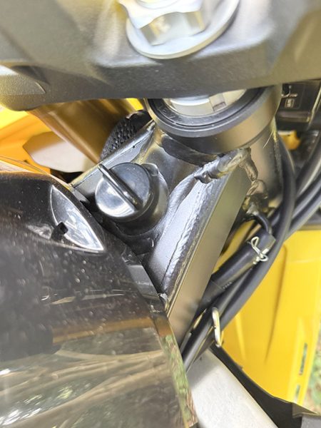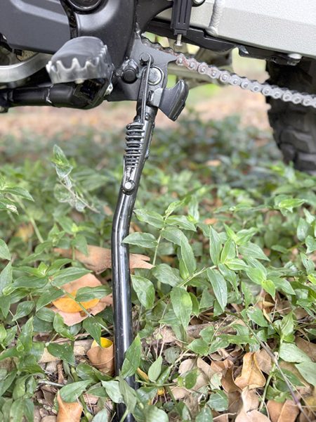 The tyres feel great on the road and are fun to ride. Off-road they were fine for fire trails, but we did have a small slip in soft sand. I dropped the bike and somehow snapped the tip off the gear lever, it didn’t bend, it just sheared. Very odd.