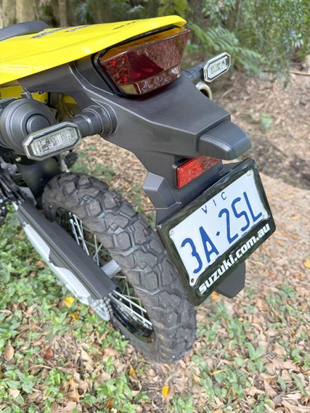Handguards are a must, mainly for bush riding and protecting fingers. The rear number plate assembly works for visibility but rattles and is bulky, I’d replace it with a tidy tail straight away.
