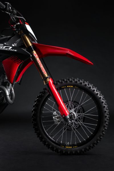 The billet Factory triple clamps further reduce weight by almost 200 grams. The skid plate and front disc guard protect against mud and stones, and the O-ring RK MXU chain, the same used on factory bikes, offers improved durability and reliability.
