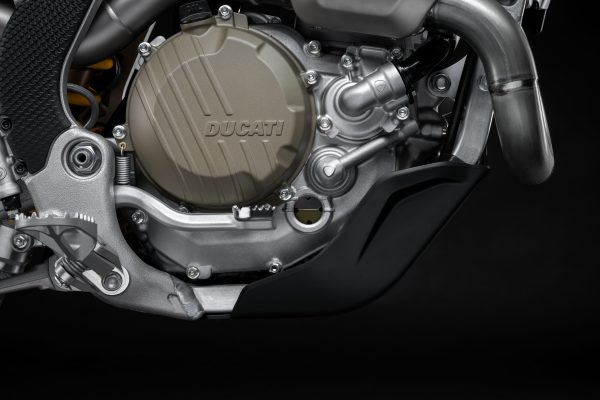 The Desmo450 MX Factory engine features Desmodromic valve timing, the system used on all Ducati racing bikes, including the MotoGP Desmosedici. This feature offers several advantages to the Desmo450, first and foremost the ability to run the engine at very high revs, thus offering greater over-rev capabilities and reducing the number of gear changes required over the course of a lap. Moreover, this increases the chances of getting off the line faster than rivals at the gate and winning the holeshot, the coveted prize that goes to the first rider who exits the first corner.