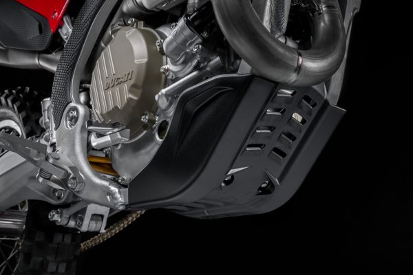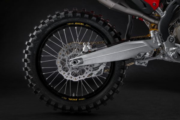Ducati Performance offers a wide range of accessories to create a replica of the Ducati Desmo450 MX competing in the MXGP World Championship. All the details of the works 450 MX are available to enthusiasts, with the sole exception of the official Showa suspension, which cannot be purchased by private riders. The special parts include high-performance rims with reinforced spokes and hubs machined from solid blocks, a racing seat and Brembo Racing brake calipers.